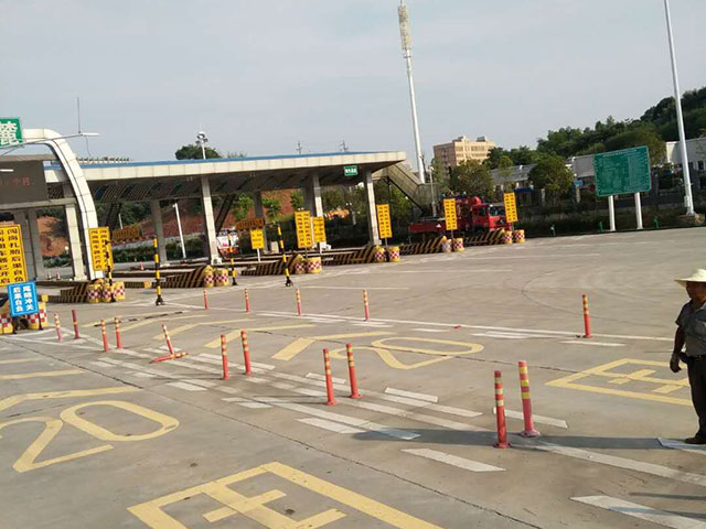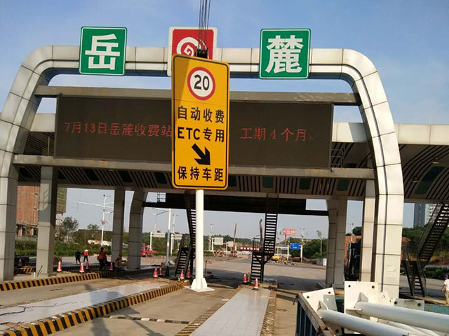 長韶婁岳麓收費(fèi)站隨車吊做最后信號燈安裝